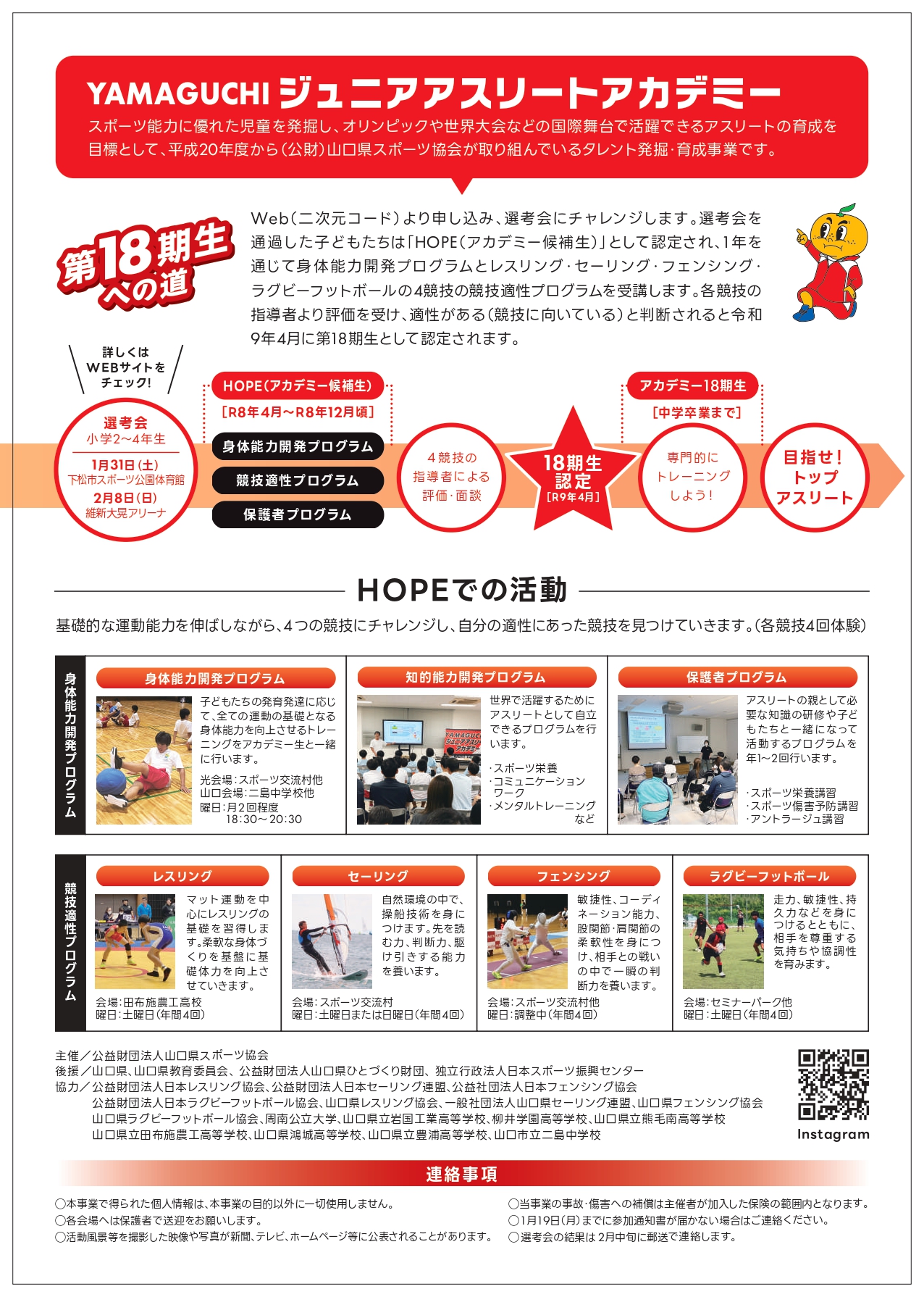 後援 / 山口県・山口県教育委員会・公益財団法人山口県ひとづくり財団・独立行政法人日本スポーツ振興センター